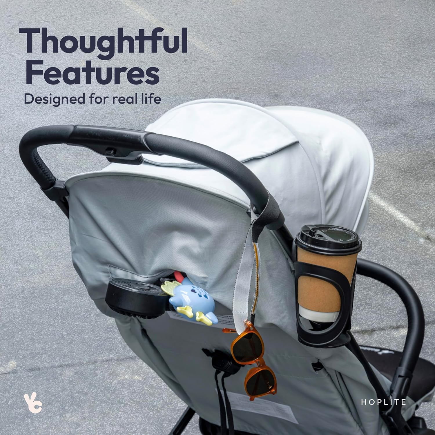 BabbleRoo Hoplite Compact Stroller – Lightweight Travel Stroller for Airplane (12.3 lbs), Newborn to 55 lbs, Easy Fold, PU Wheels, Alloy Frame, Near-Flat Recline, Raincover, Cup Holder, Baby Stroller